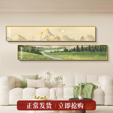 日照金山客厅装饰画山水风景沙发背景墙挂画高级感横幅窄长条壁画