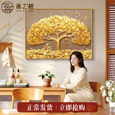 黄金发财树餐厅电源总开关挂画发财树多媒体箱装饰画聚财电表箱画