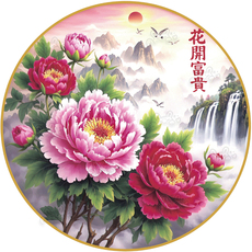 花开富贵牡丹图新中式无框圆形牡丹贴画客厅玄关餐厅装饰墙自粘画