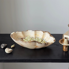 侘寂风大理石托盘复古黄洞石高脚果盘装饰盘民宿样板间软装摆件