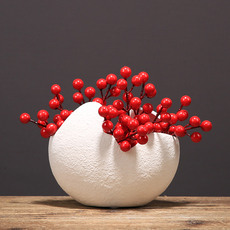现代简约红果蛋壳陶瓷花瓶玄关柜斗柜客厅鞋柜摆件书房喜庆装饰品