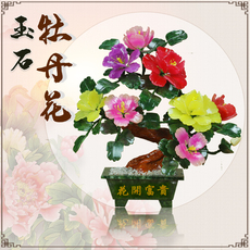 天然玉石花牡丹盘景摆件手工玉雕盆栽电视柜装饰商务工艺乔迁礼品