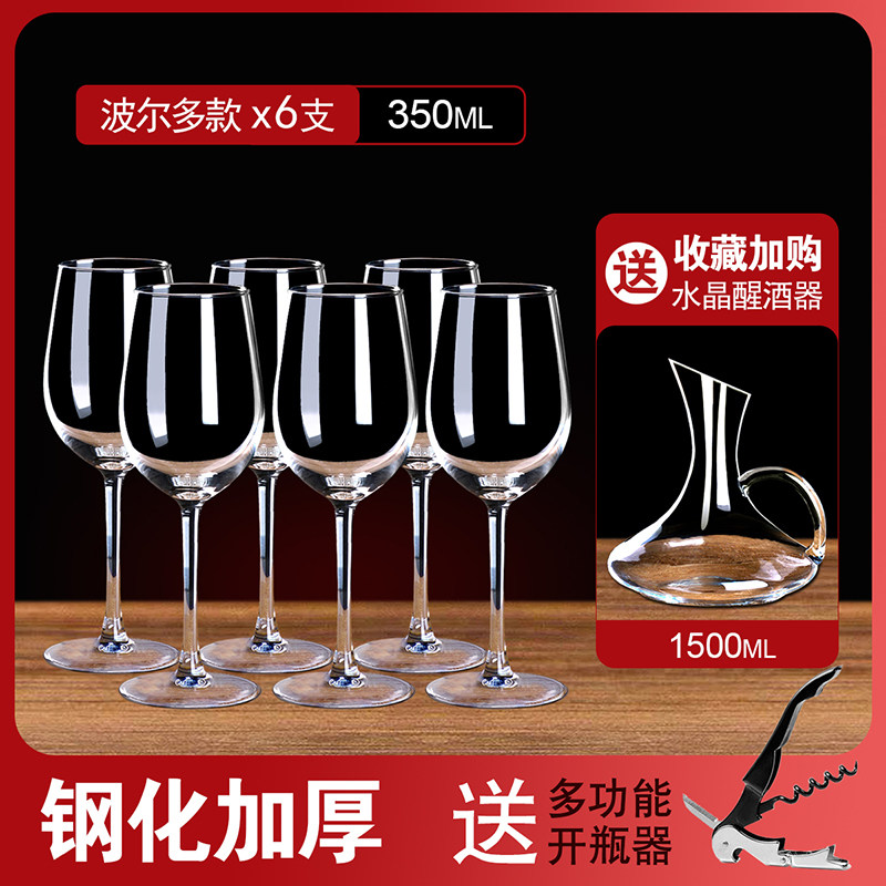 欧式无铅玻璃红酒杯6只装醒酒器杯架葡萄酒杯高脚杯套装家用4个