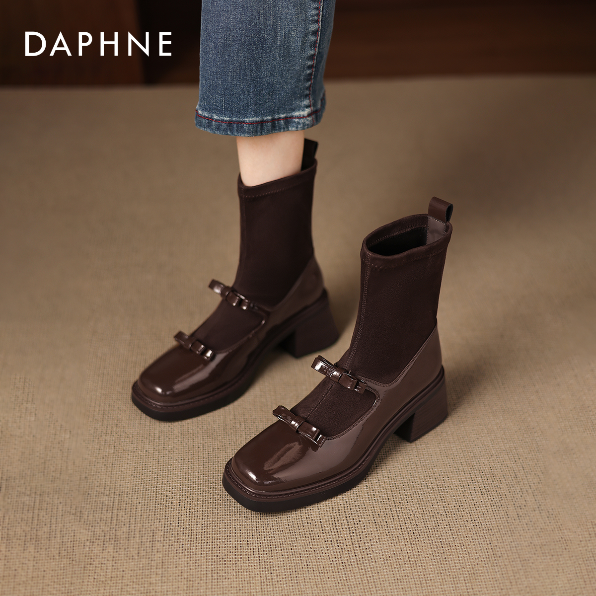 达芙妮瘦瘦小短靴女2025新款秋冬法式加绒袜靴女款高跟鞋马丁靴子