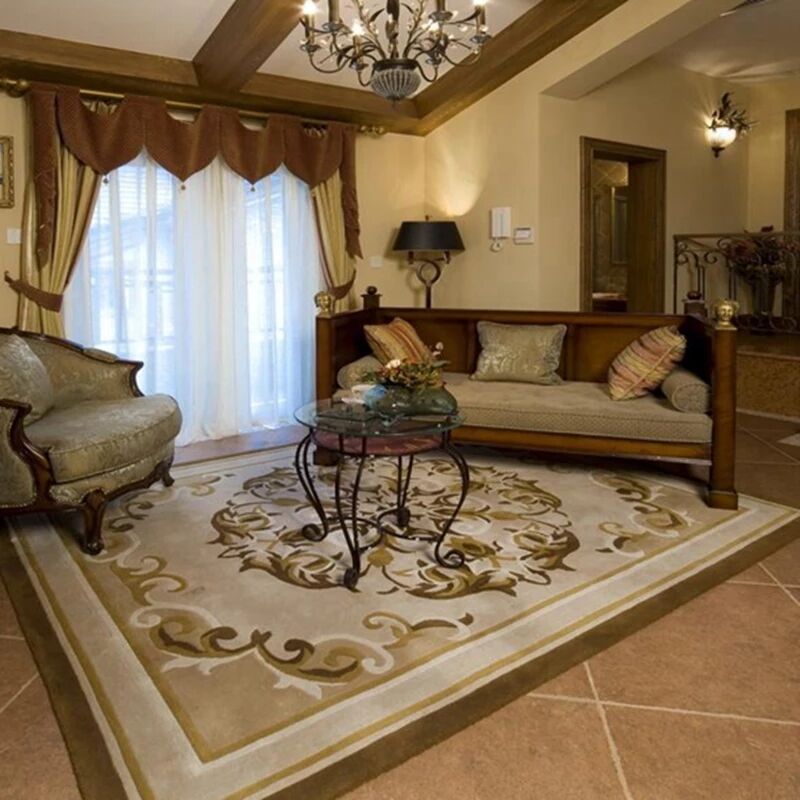 欧式美式家用小奢华客厅茶几卧室床边纯手工羊毛混纺满铺定制地毯