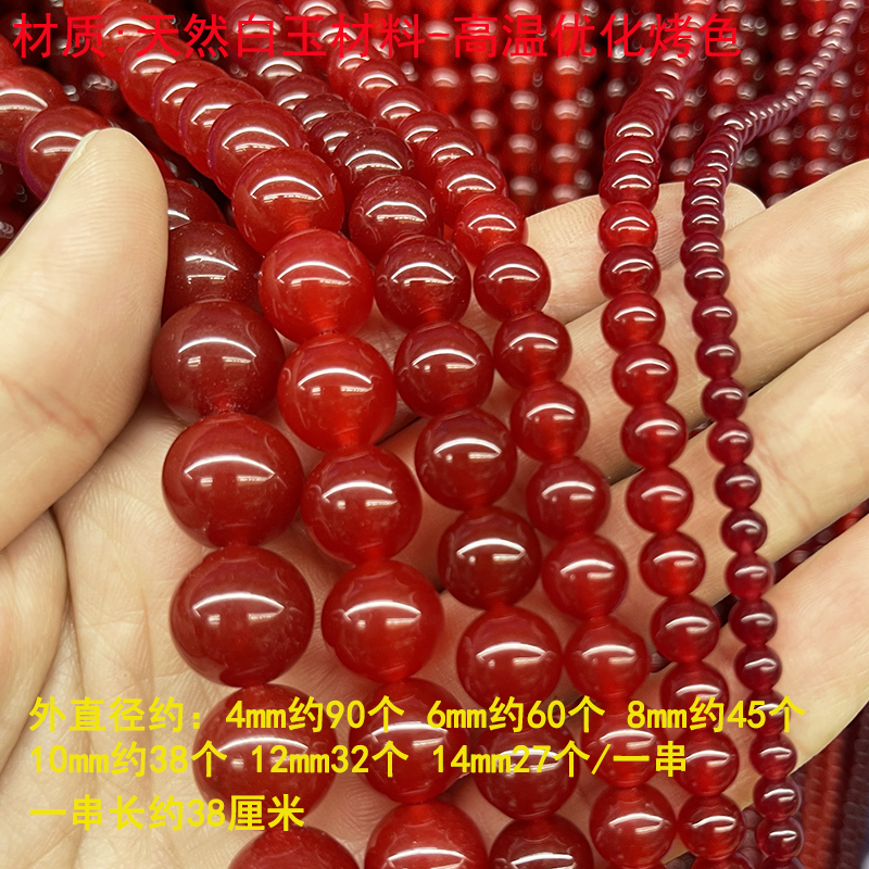红玉髓白玉烤色半成品散珠子 4-14mm圆珠手串项链手工DIY饰品配件