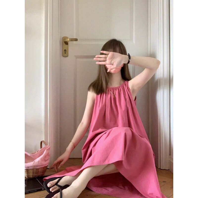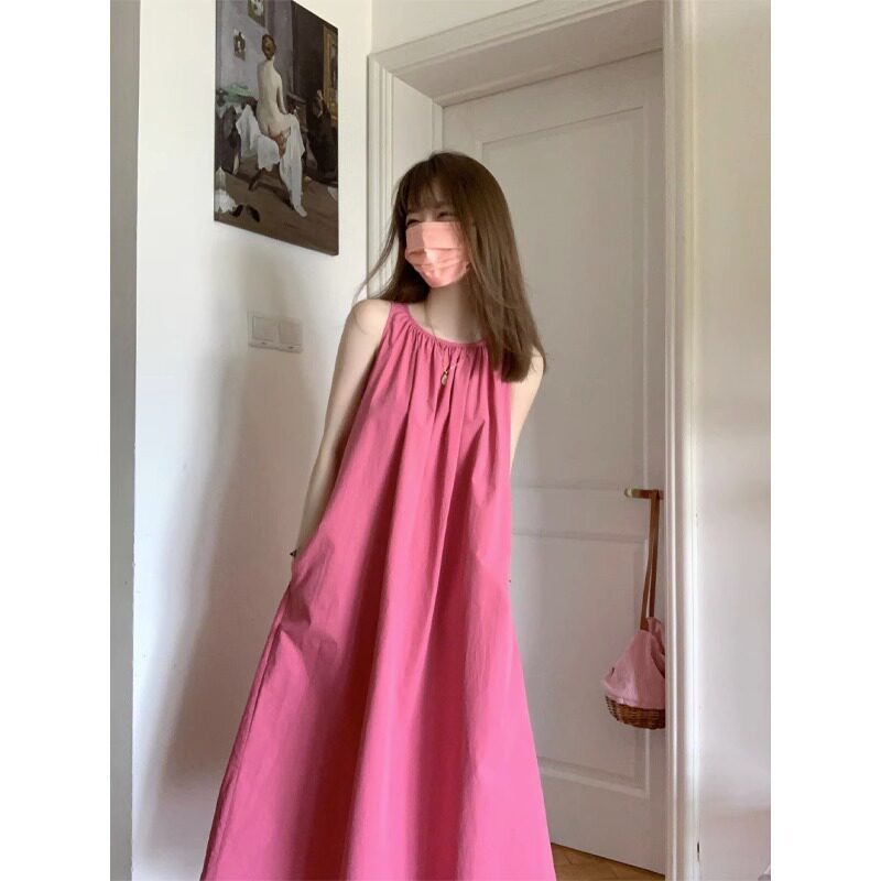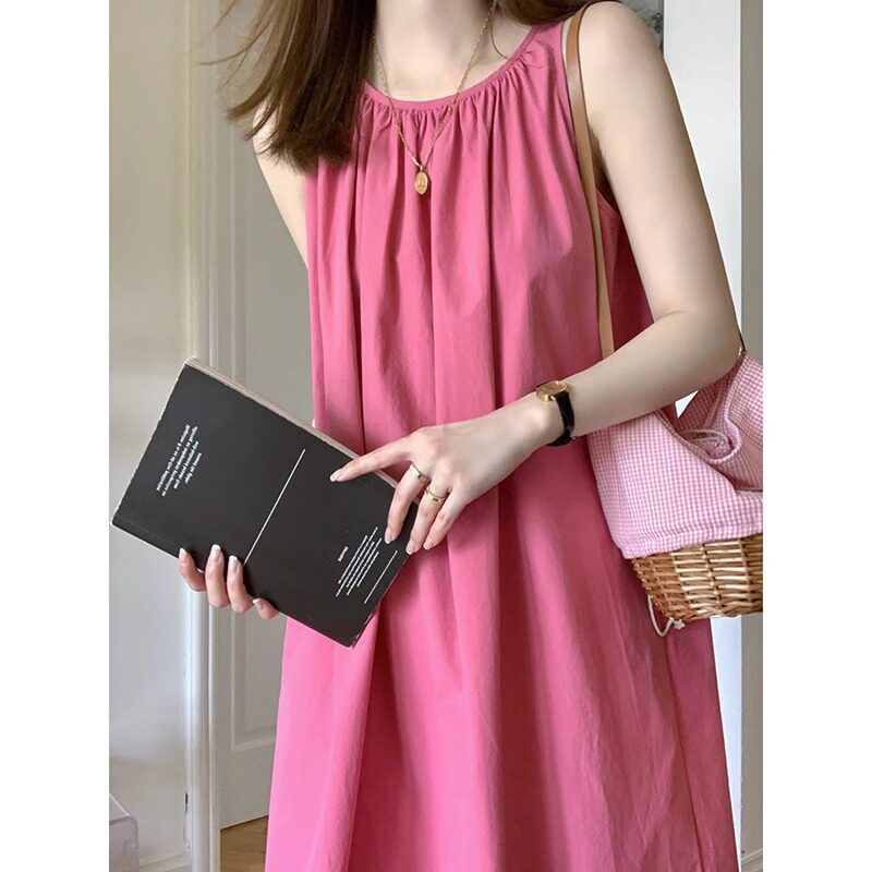 2023新款茶歇法式无袖吊带连衣裙女夏季背心A字长裙显白气质树莓