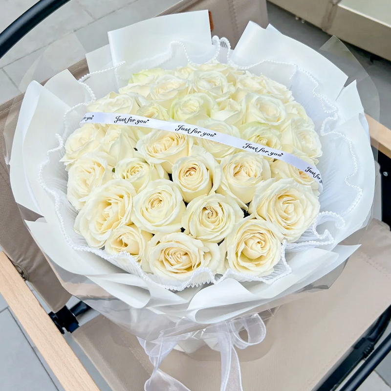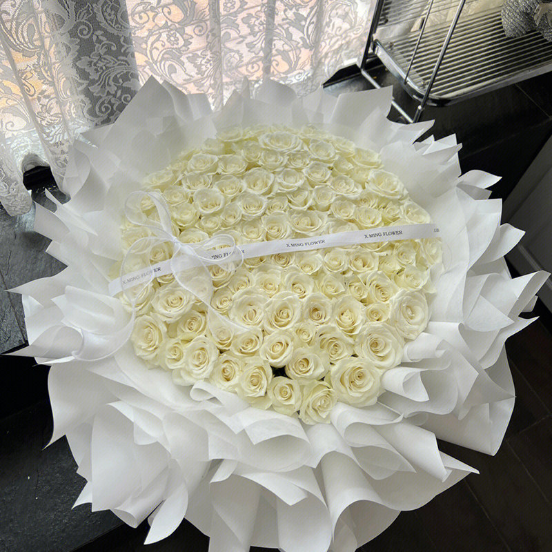 跨新年全国白玫瑰花束送女友鲜花速递同城深圳广州北京生日配送店
