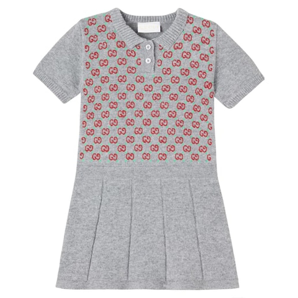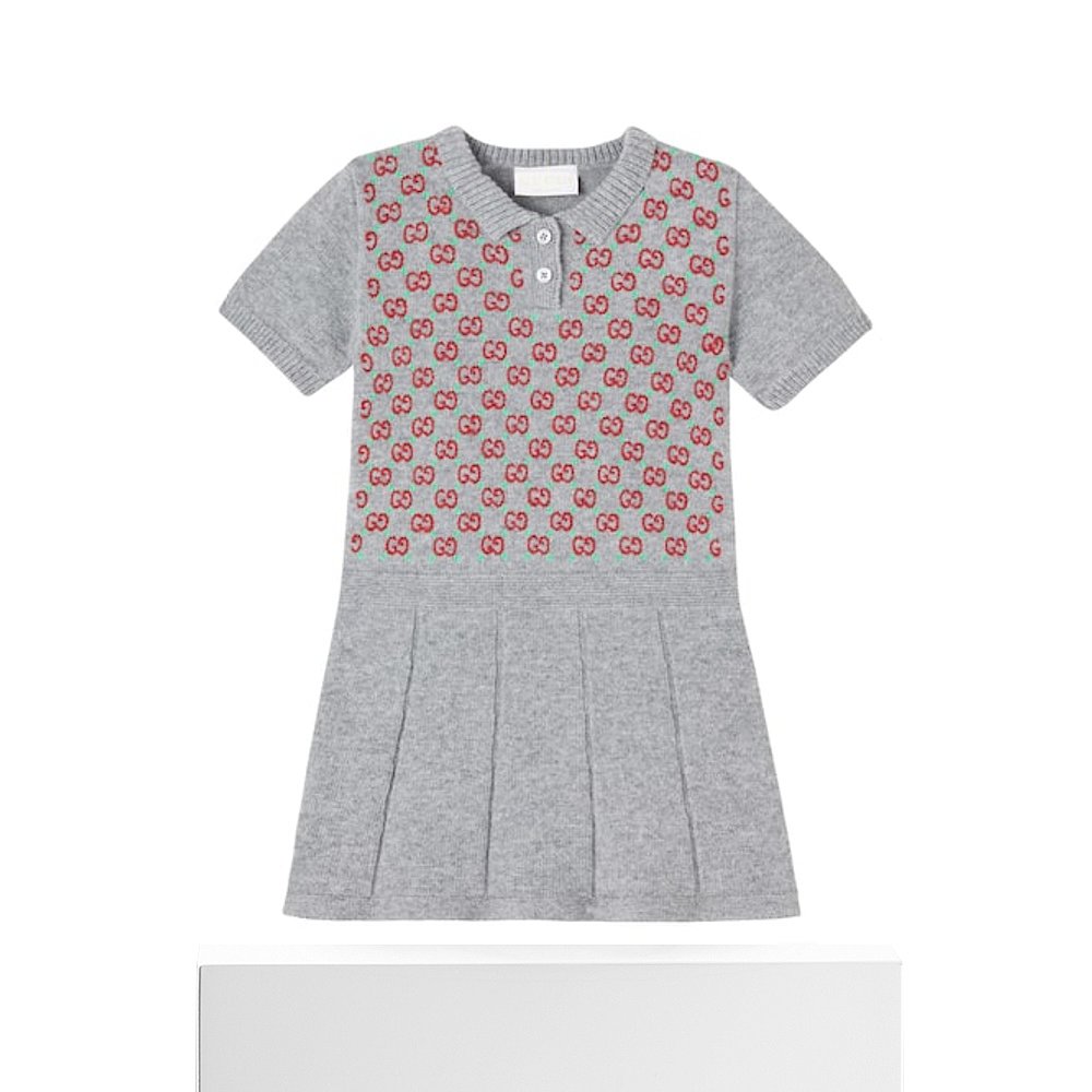 香港直邮Gucci 古驰 婴儿 GG 刺绣羊毛连衣裙童装