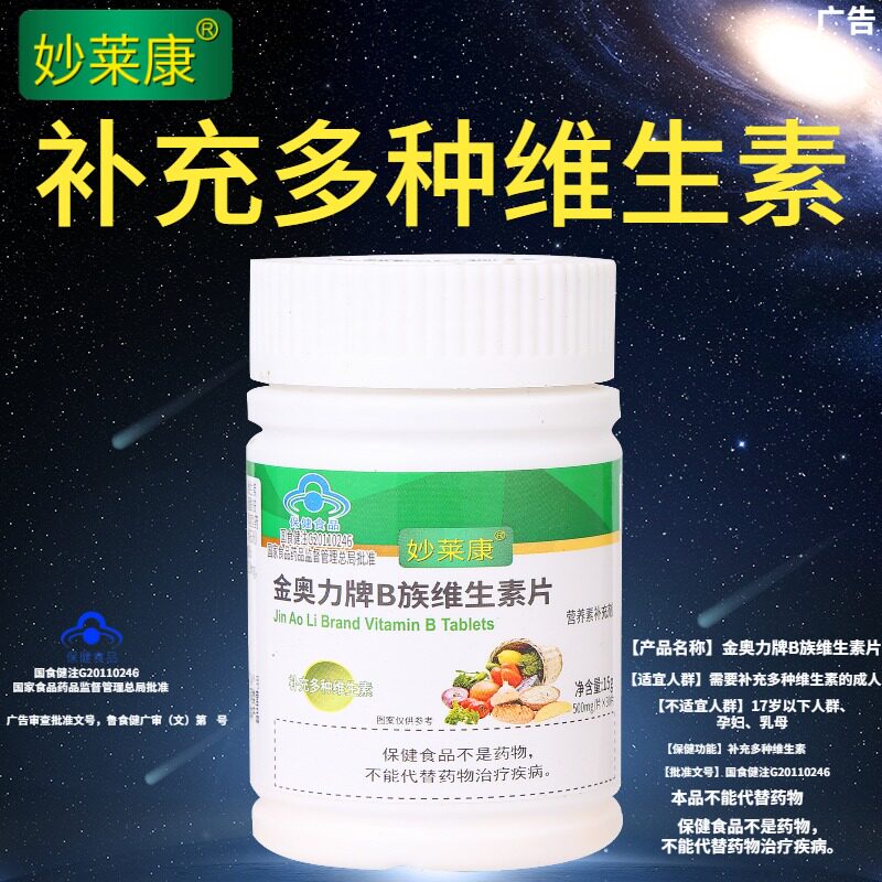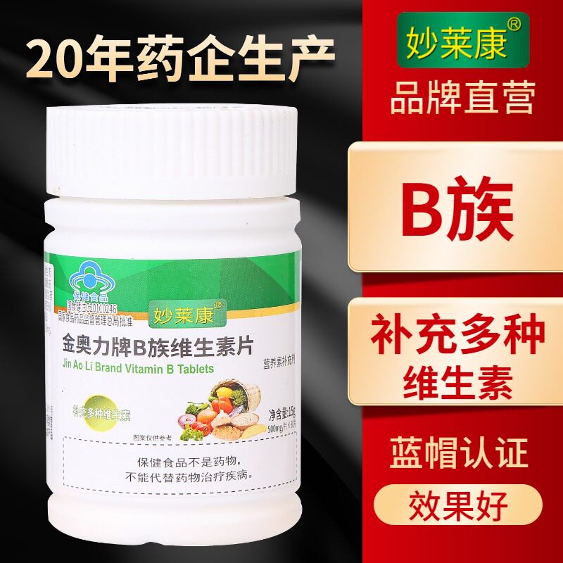 2瓶妙莱康B族维生素成人复合维生素b1b2b6b12泛酸烟氨酸--旗舰店U