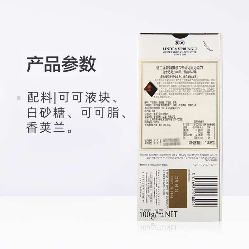 Lindt瑞士莲正品70%可可黑巧克力