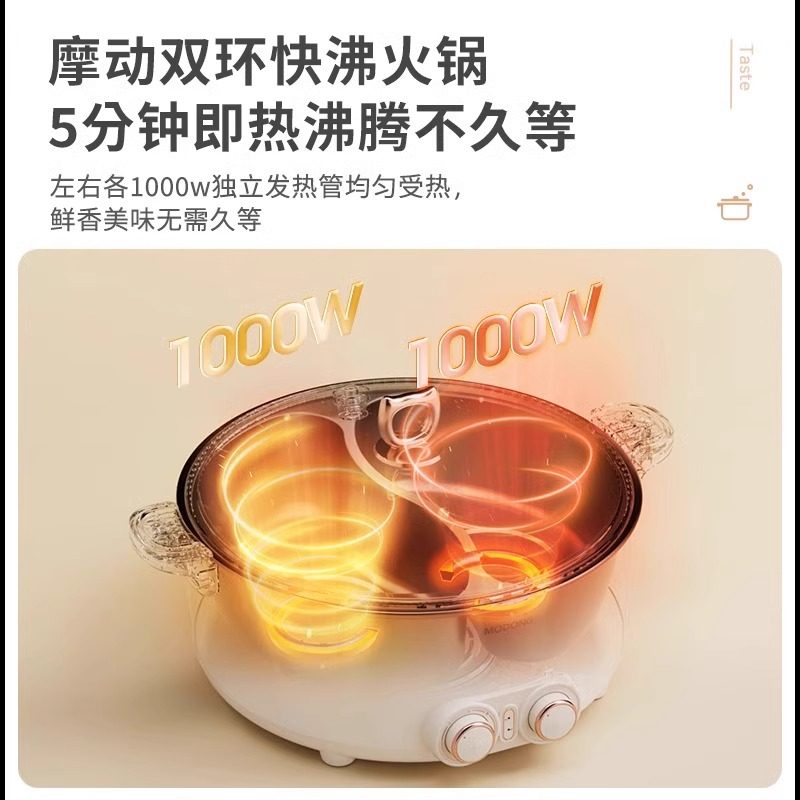 摩动三宫格电火锅鸳鸯锅家用煮锅