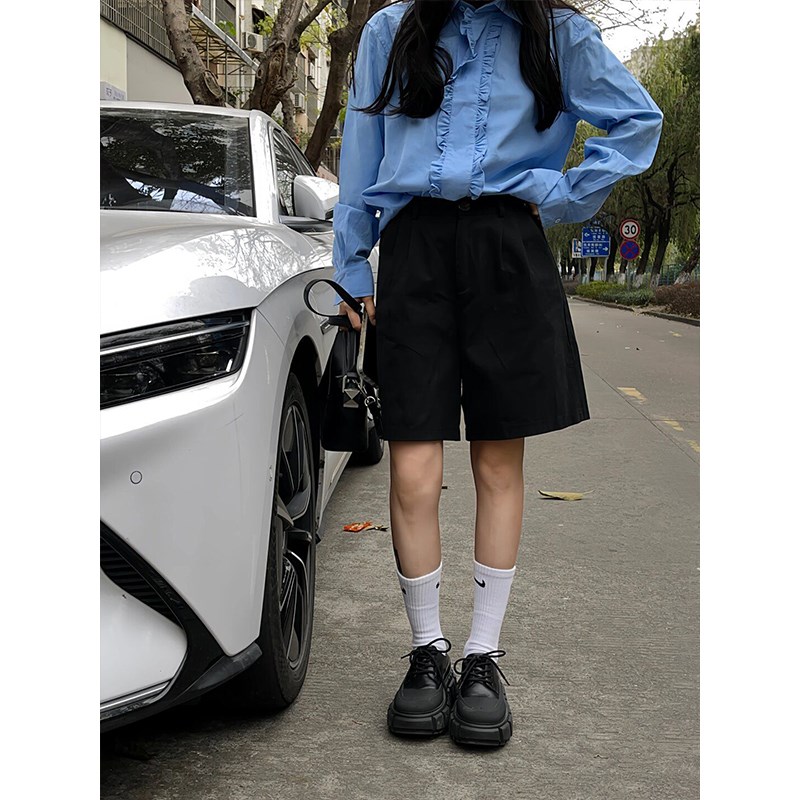 新款短裤女款夏季2024高腰阔腿裤显瘦黑色休闲梨形身材西装五分裤