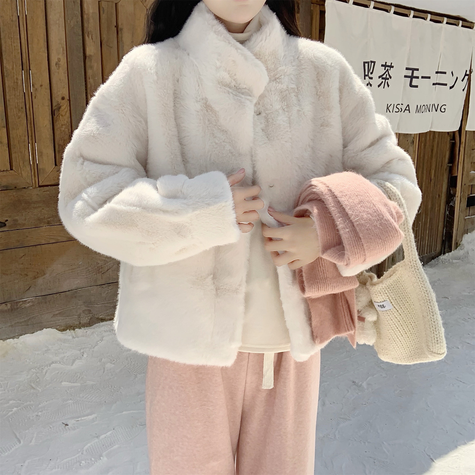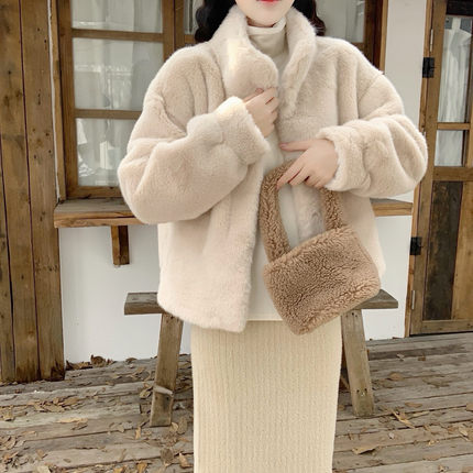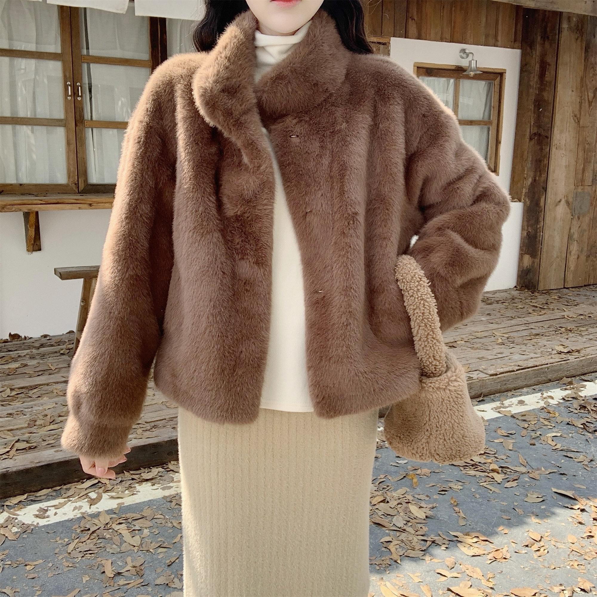 【DearYN】立领仿貂毛皮草外套