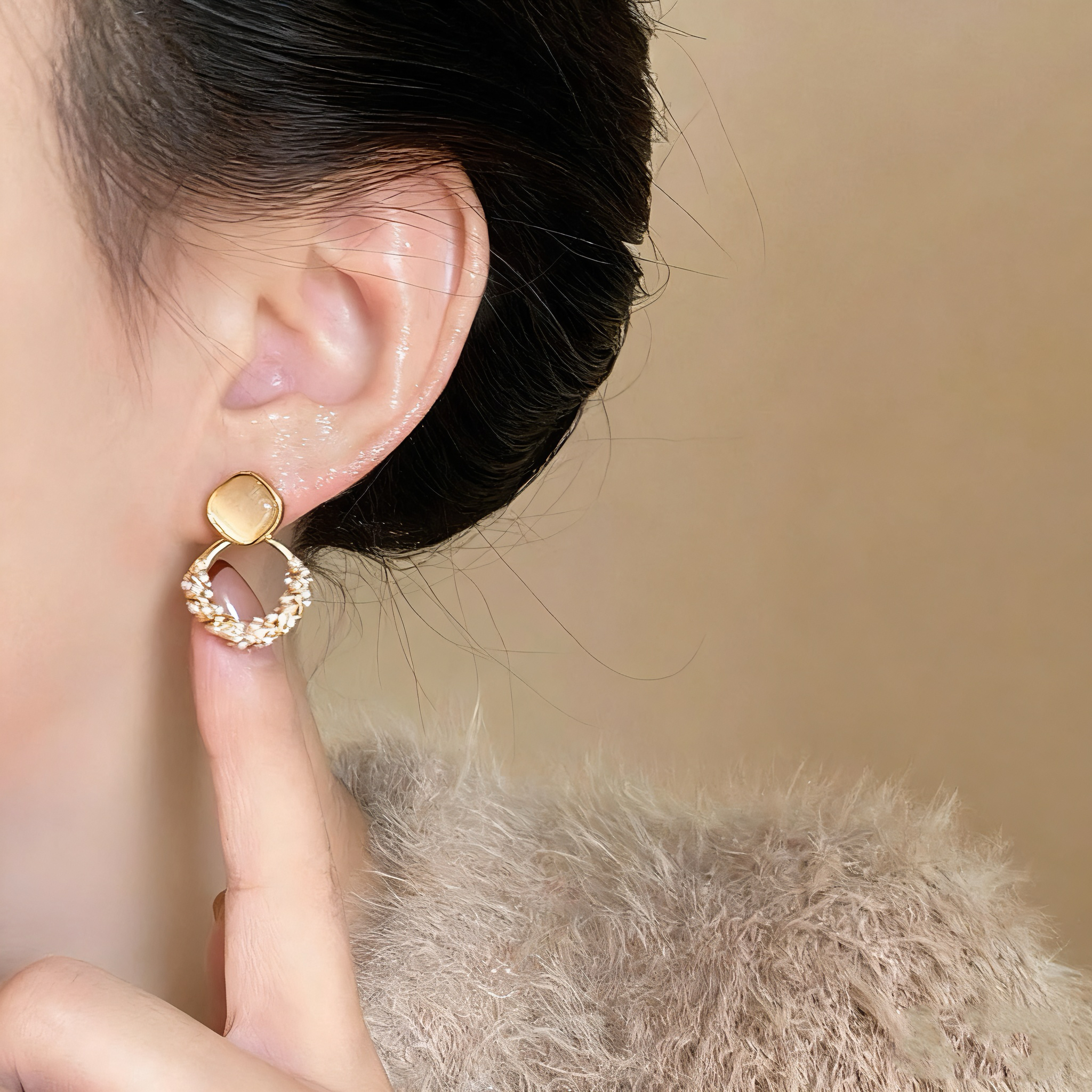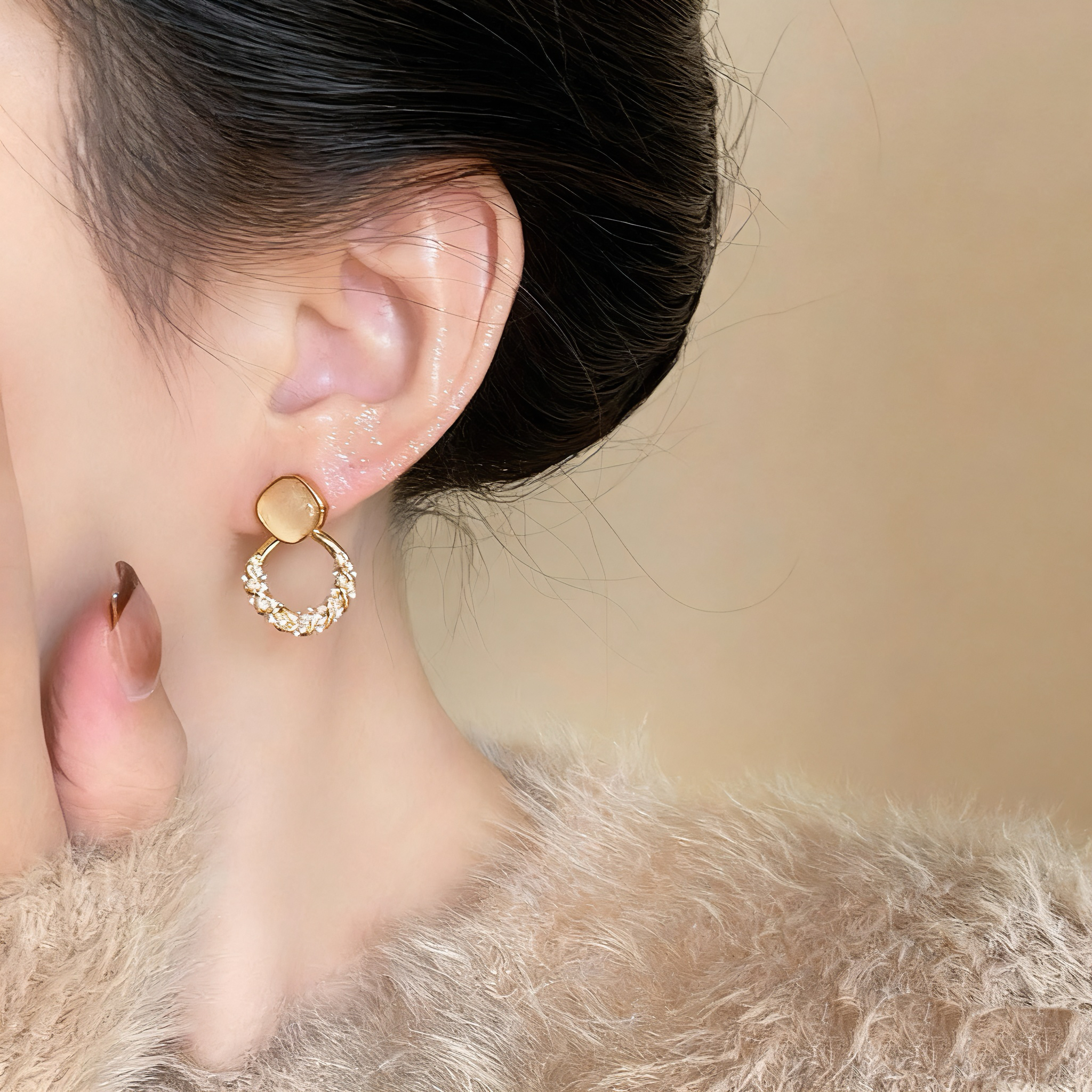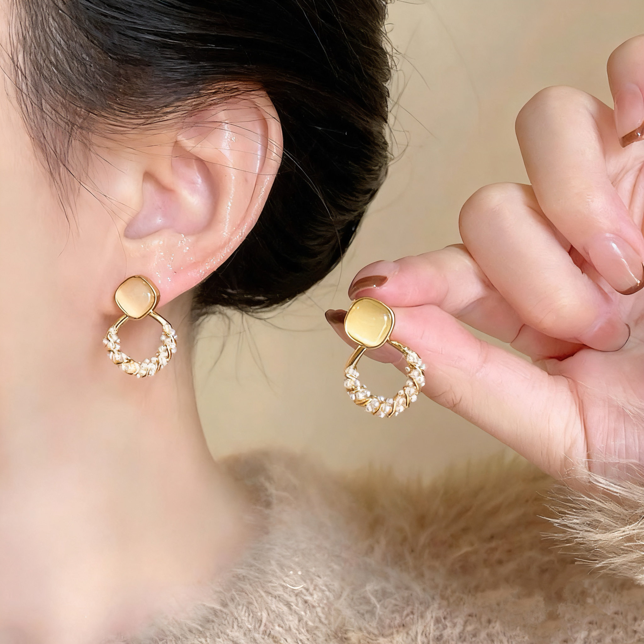猫眼石珍珠菱形耳环2025新款爆款高级感超火耳饰女温柔风气质耳钉