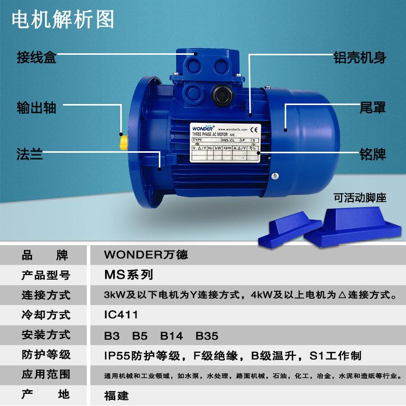 电机万达MS7124现货0.37W三相铝壳异步木工电动机诠世同款