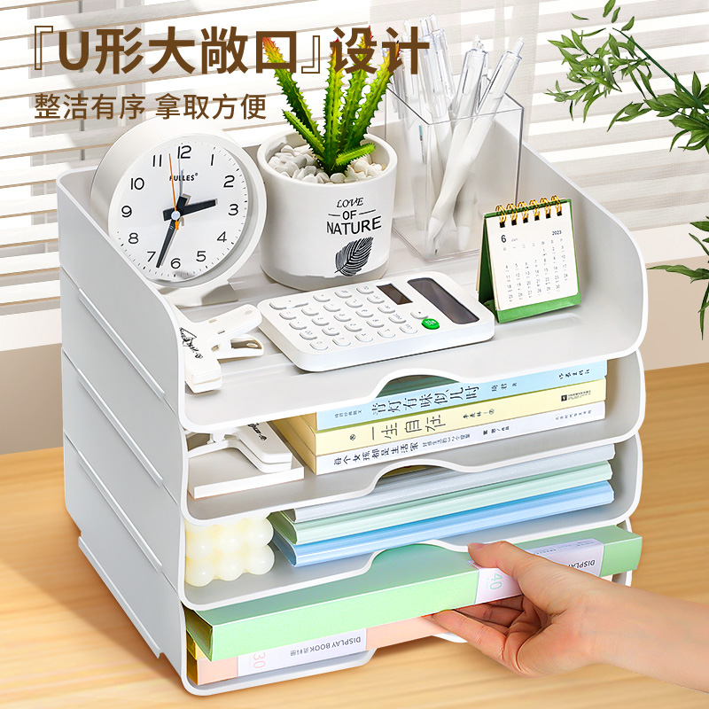 可叠加桌面文件架办公室多层收纳盒简约a4文件置物架书桌资料整理抽屉整理盒ins书架书立宿舍用大容量分类架