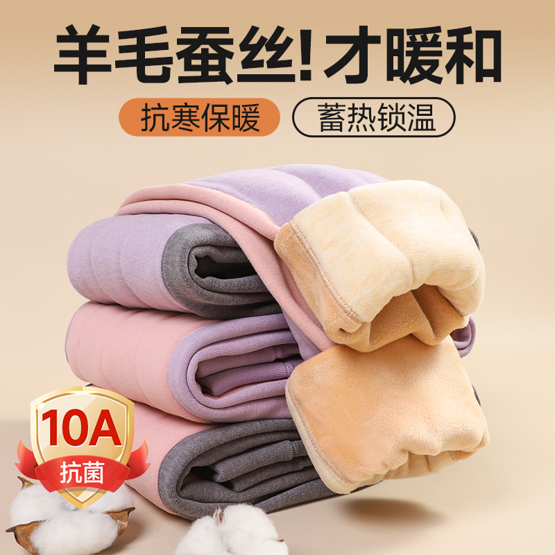 儿童保暖裤男童女童秋裤秋冬季加绒加厚打底裤中大童羊毛蚕丝裤子