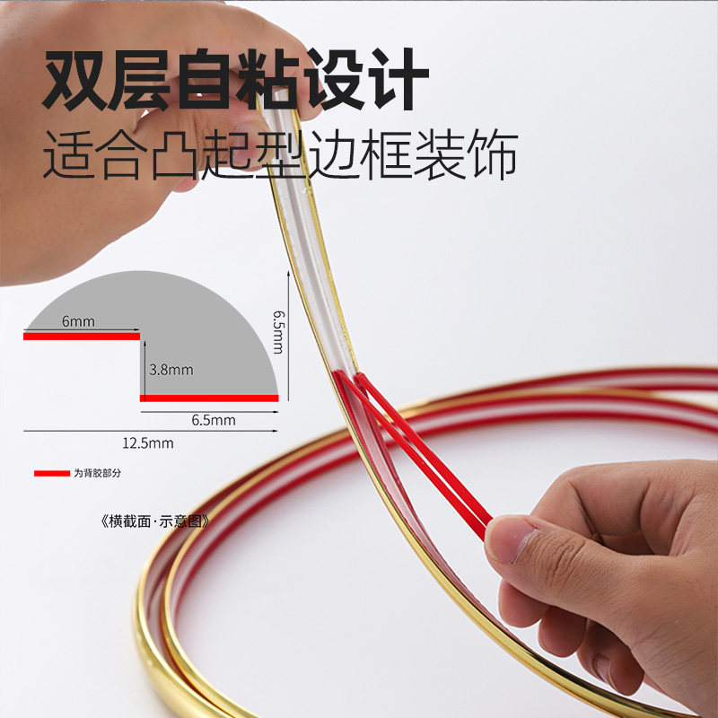 封边条凸起框架美缝贴条相框线条封边条镜子边框防护条金色装饰条