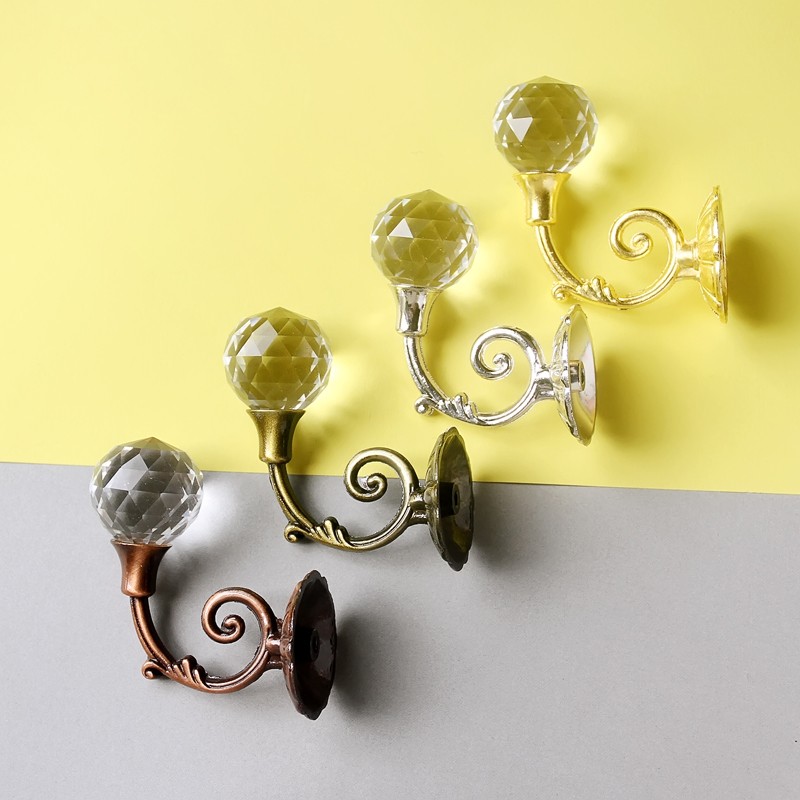 【免打孔】锌合金小水晶窗帘挂钩墙钩窗帘配件固定绑带的挂钩客厅