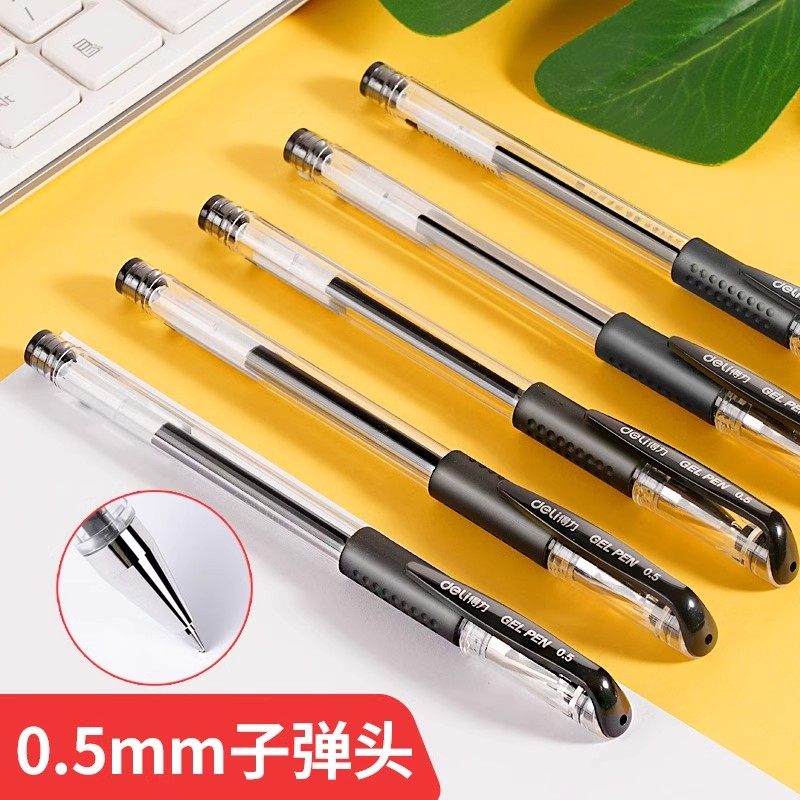 60支得力中性笔黑色水笔子弹头0.5mm文具办公用品签字笔批发整盒