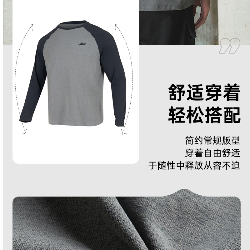 【自营】SKECHERS斯凯奇中性针织长袖透气长袖T恤运动服套头衫