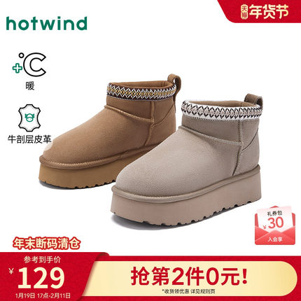 热风厚底雪地靴女鞋2025年冬季新款增高百搭保暖棉鞋休闲短筒靴子