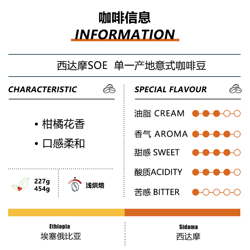 西达摩SOE日晒单一产地 浅烘意式咖啡豆埃塞俄比亚精品美式奶咖啡