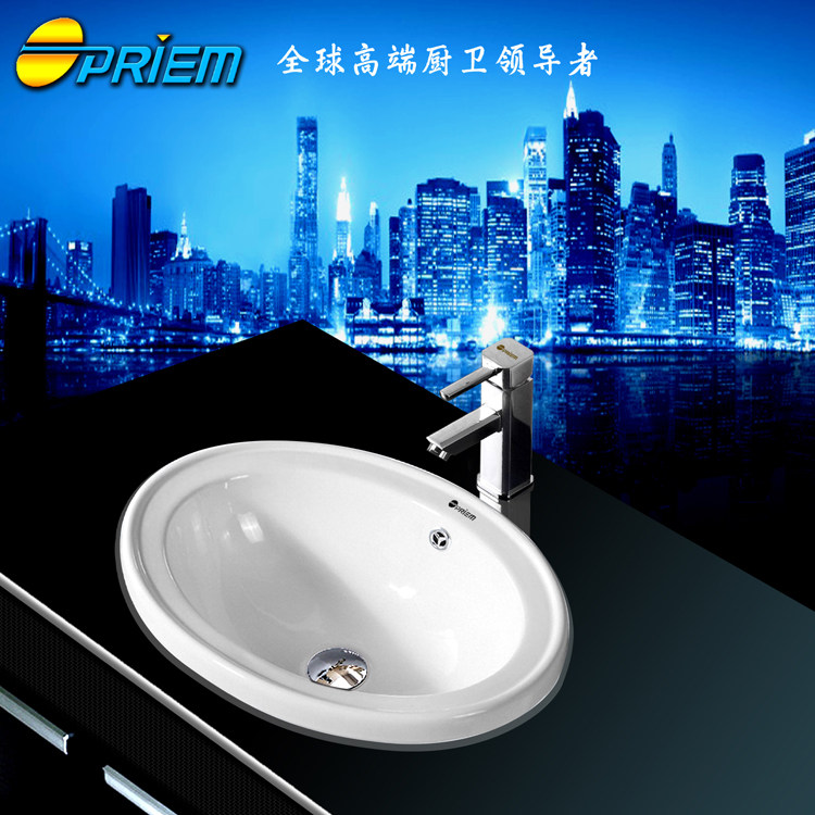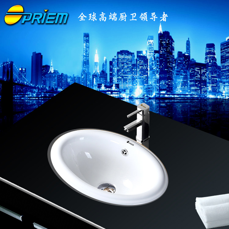 OPRIEM半嵌入式洗面盆陶瓷洗脸盆椭圆形台下改换台上盆家用台中盆