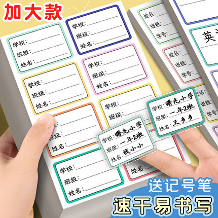 姓名贴小学生专用名字贴防水防撕标签贴纸儿童幼儿园班级高中生初中生一年级标签纸手写标记空白不干胶口取纸
