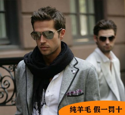 纯羊毛商务短款流苏围巾