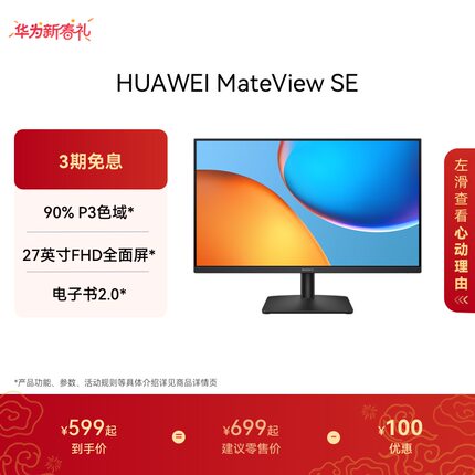 华为MateView SE 27英寸 高清IPS全面屏 100Hz高刷电脑办公显示器