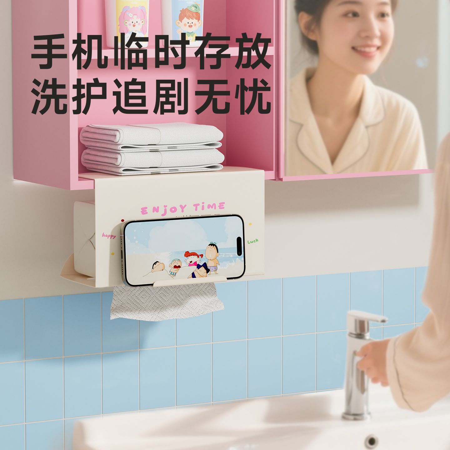 浴室镜柜下洗脸巾收纳盒卫生间倒挂纸巾置物收纳架卡通壁挂抽纸盒