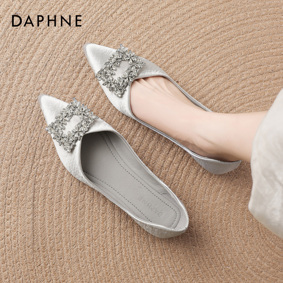 达芙妮法式缎面尖头单鞋2025新款闪钻秋季女鞋浅口仙女平底女鞋子