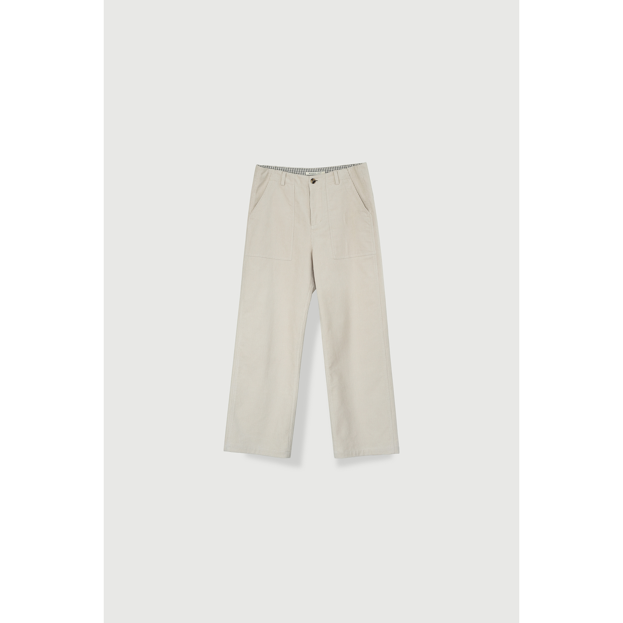 浅米灰灯芯绒中低腰宽腿长裤 WOODEN SHIP