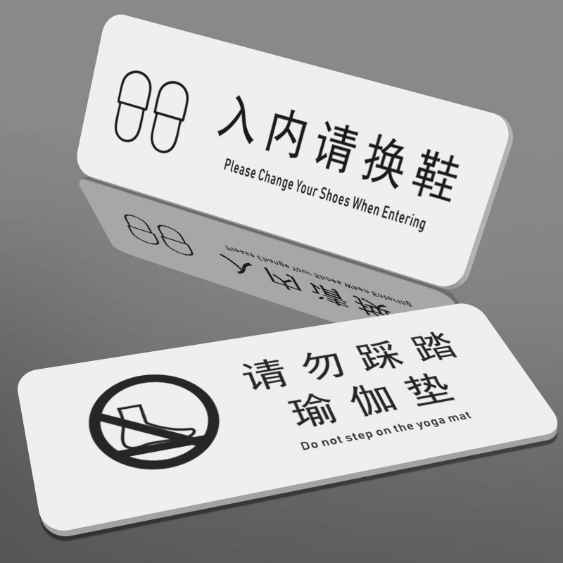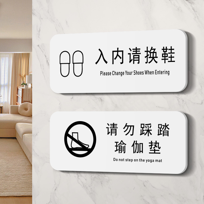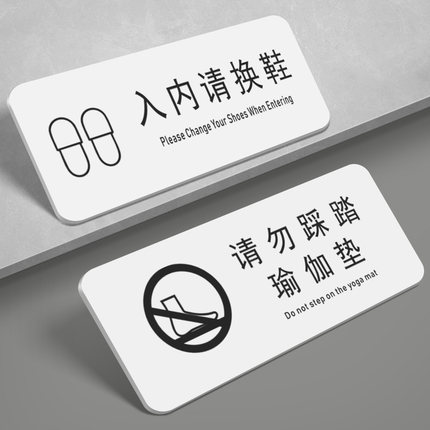 入内请换鞋温馨提示牌进门进屋上楼入内请换鞋拖鞋瑜伽馆请勿踩踏瑜伽垫标识提示牌定制个性创意墙贴纸