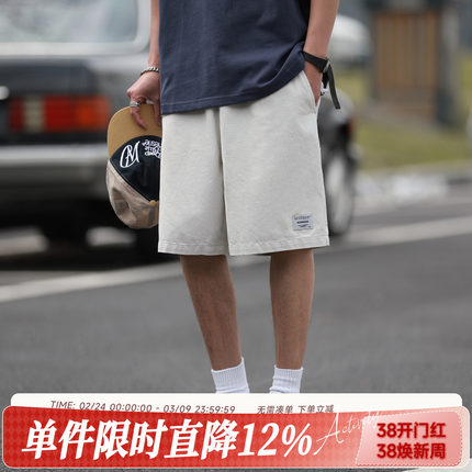 碳磨珠地棉嘿马七作美式复古夏季男款重磅高密水洗伐木工装短裤潮