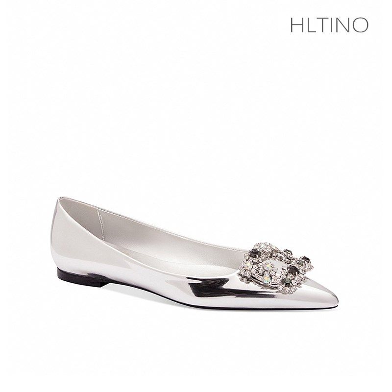2025夏季新款红色真丝绸缎面水钻方扣平底鞋法式尖头单鞋子女婚鞋