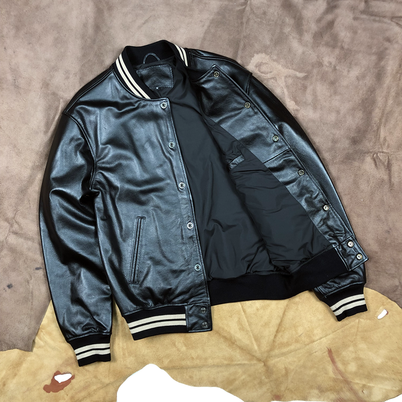 秋冬真皮皮衣男机车休闲刺绣夹克高端小牛皮棒球服宽松外套短上衣