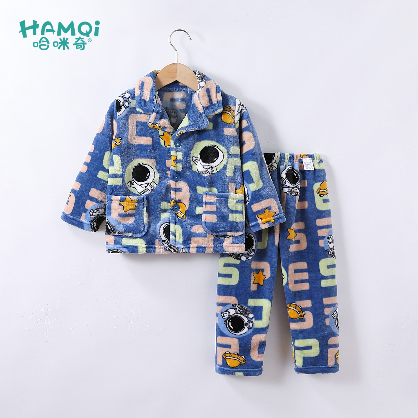 男童法兰绒家居服套装秋冬装宝宝卡通睡衣男孩小儿童新款外穿衣服