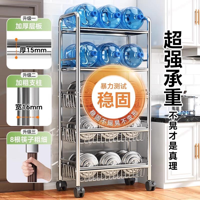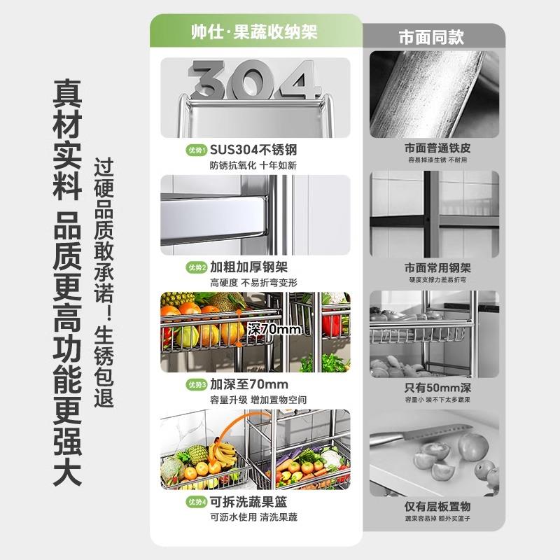 帅仕304不锈钢厨房菜篮子置物架落地家用微波炉锅具果蔬菜收纳层