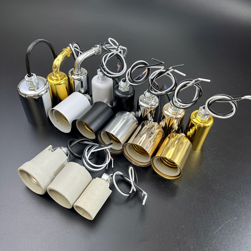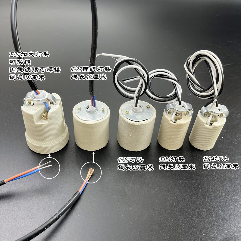 E14e27灯头灯杯灯座水晶灯具配件带电线陶瓷大小螺口护套DIY光源
