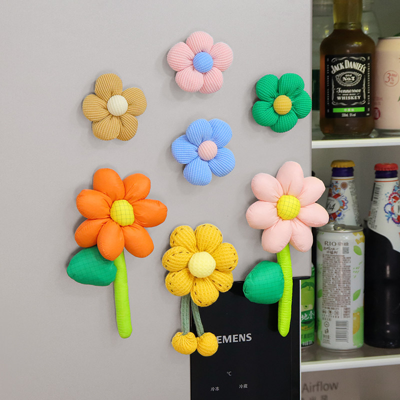创意可爱布艺立体花朵冰箱贴磁贴毛绒向日葵装饰太阳花防撞贴磁吸