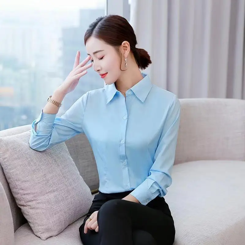 韩版短款女式衬衫休闲女装上衣学生大码长袖防走光白衬衫衬衣女