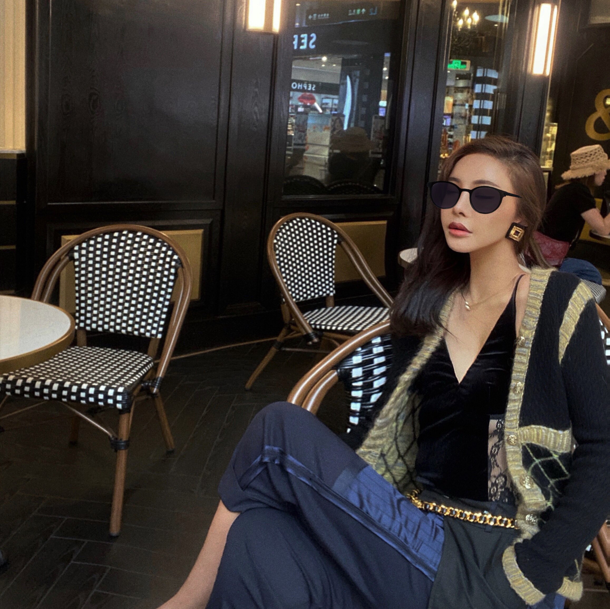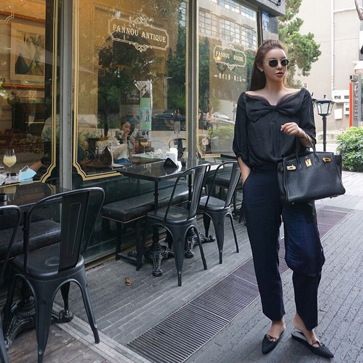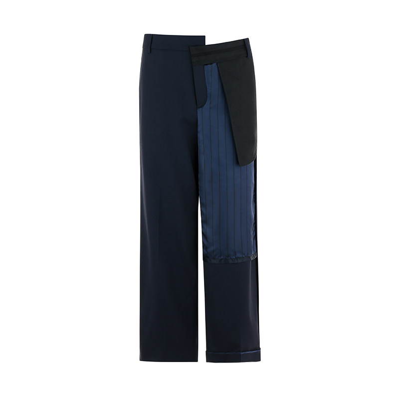 BettyChow买手店私服小众拼蓝缎9分西裤女姐姐风直筒休闲长裤