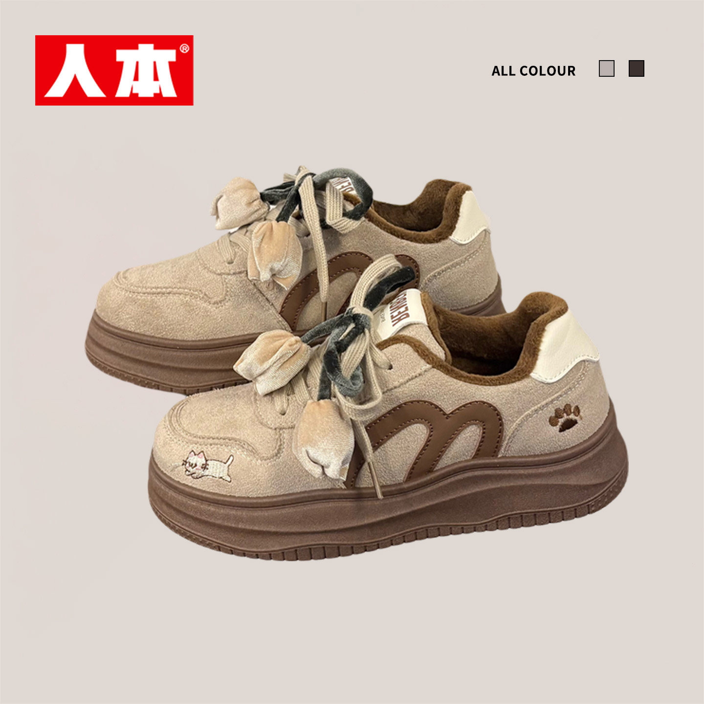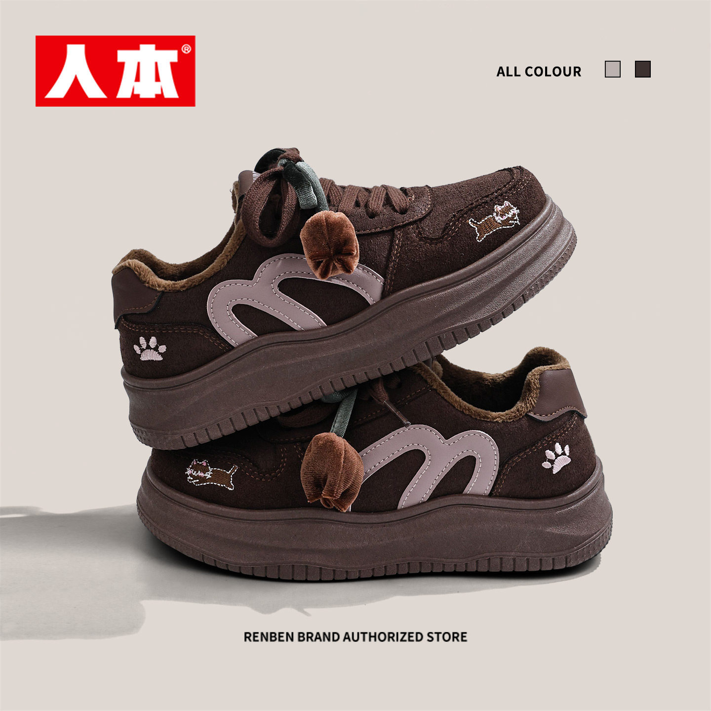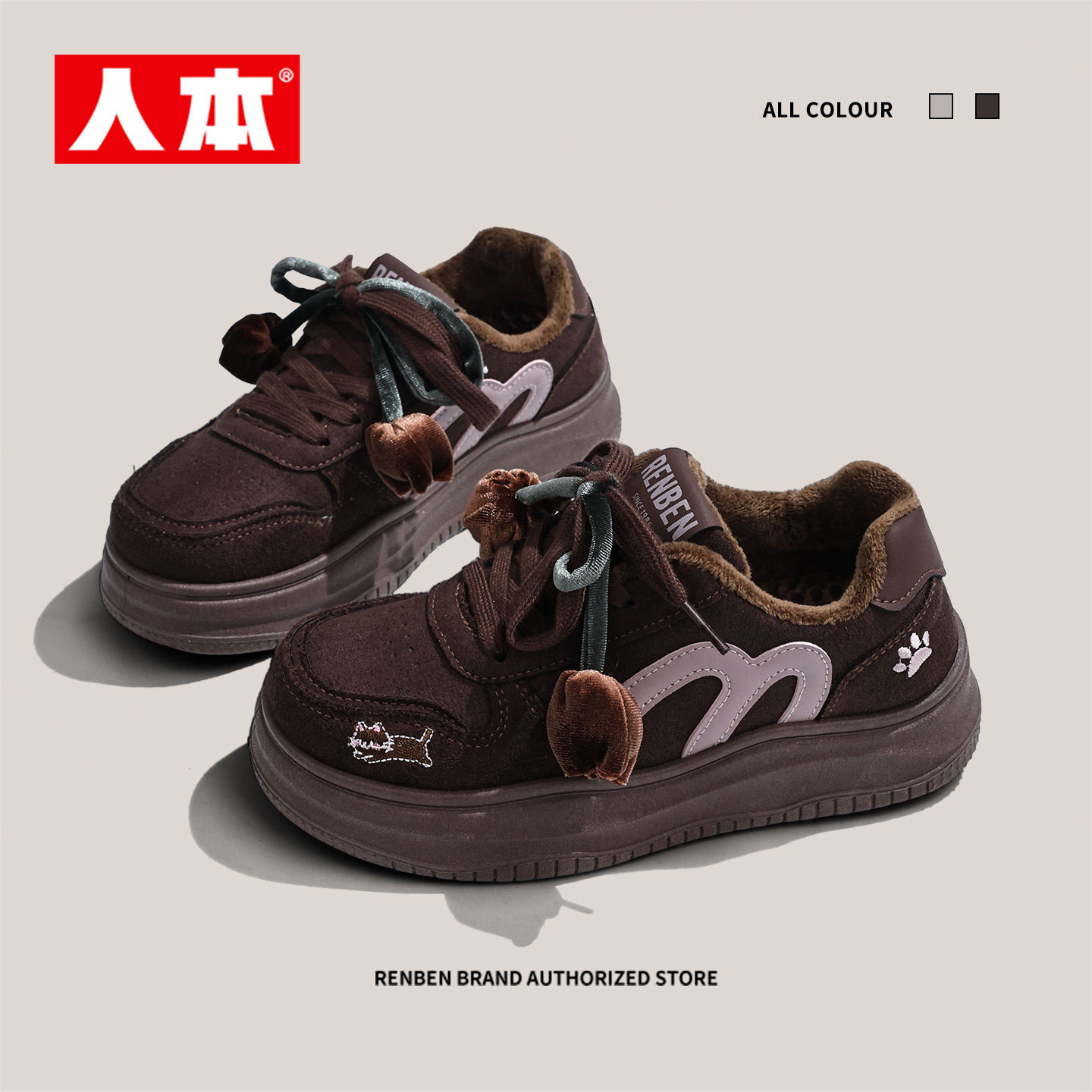 人本官方店厚底2025冬季加绒保暖新款运动休闲阿甘鞋女鞋棉鞋板鞋