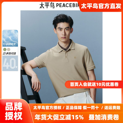 【索罗娜凉感】太平鸟男装40支polo衫男秋季纯色修身翻领短袖t恤&
