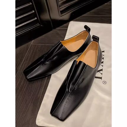 真皮网红2026方头平底乐福鞋