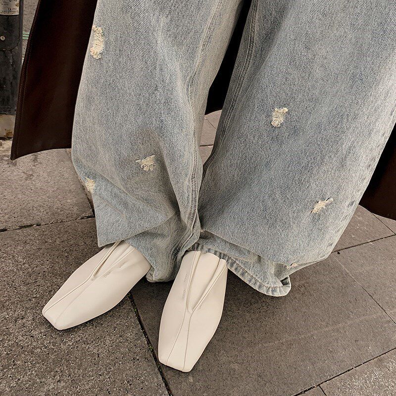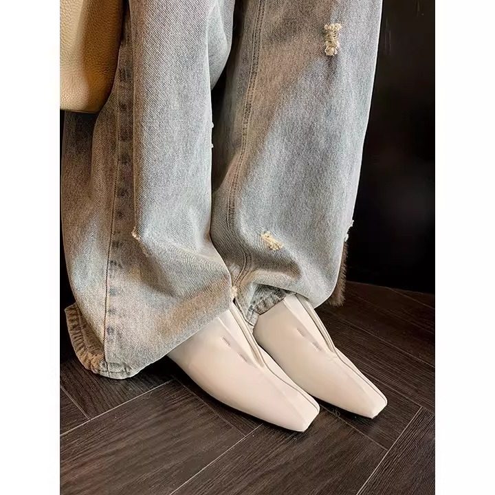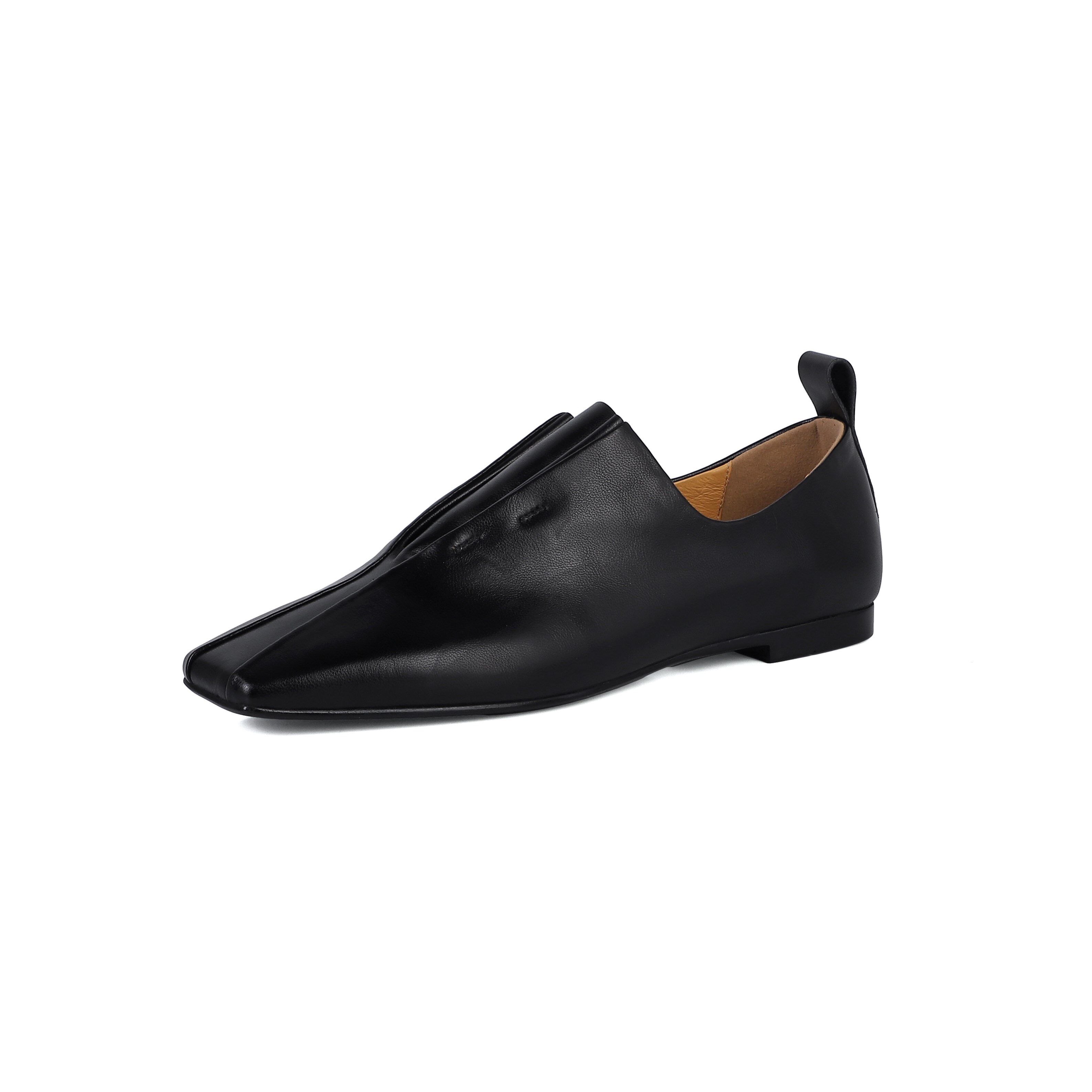 真皮网红小众方头平底休闲薄底哑光小皮鞋超软羊皮软底乐福单鞋女