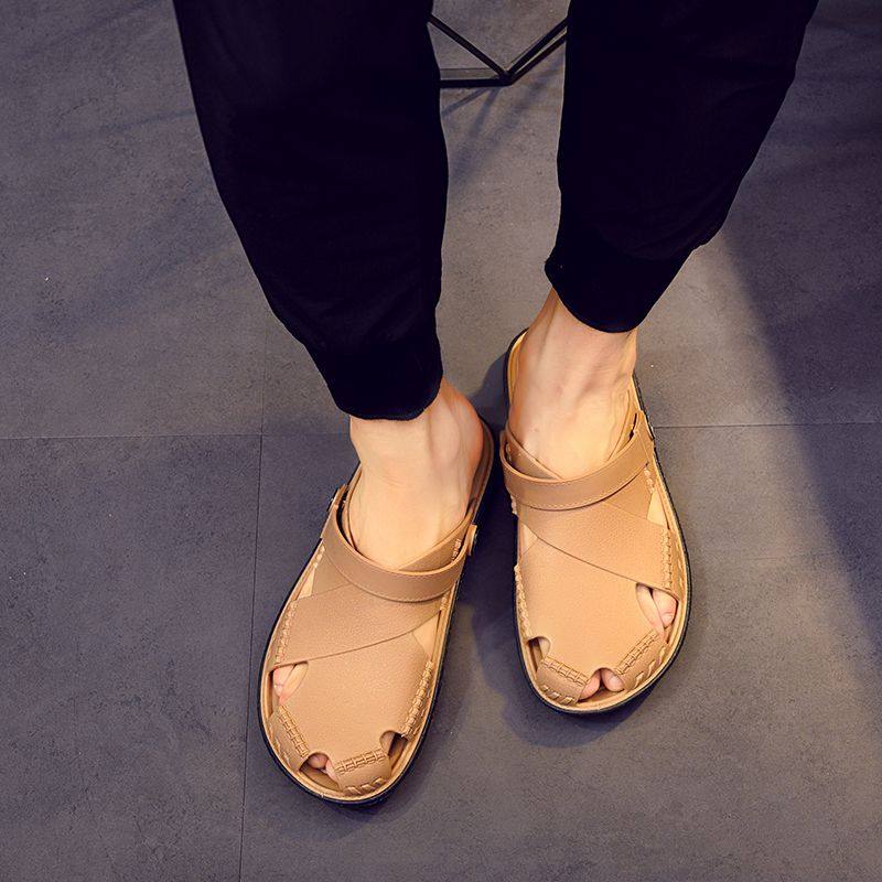 超软进口越南橡胶凉鞋男款高端两用拖鞋罗马老防臭镂空透气沙滩鞋